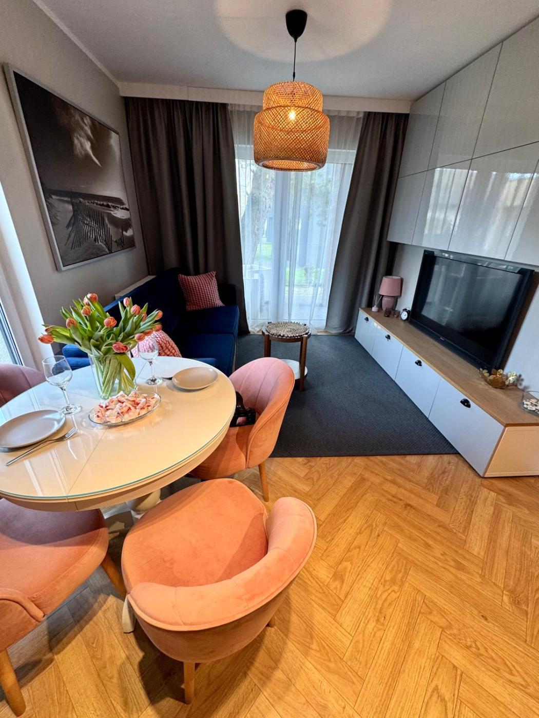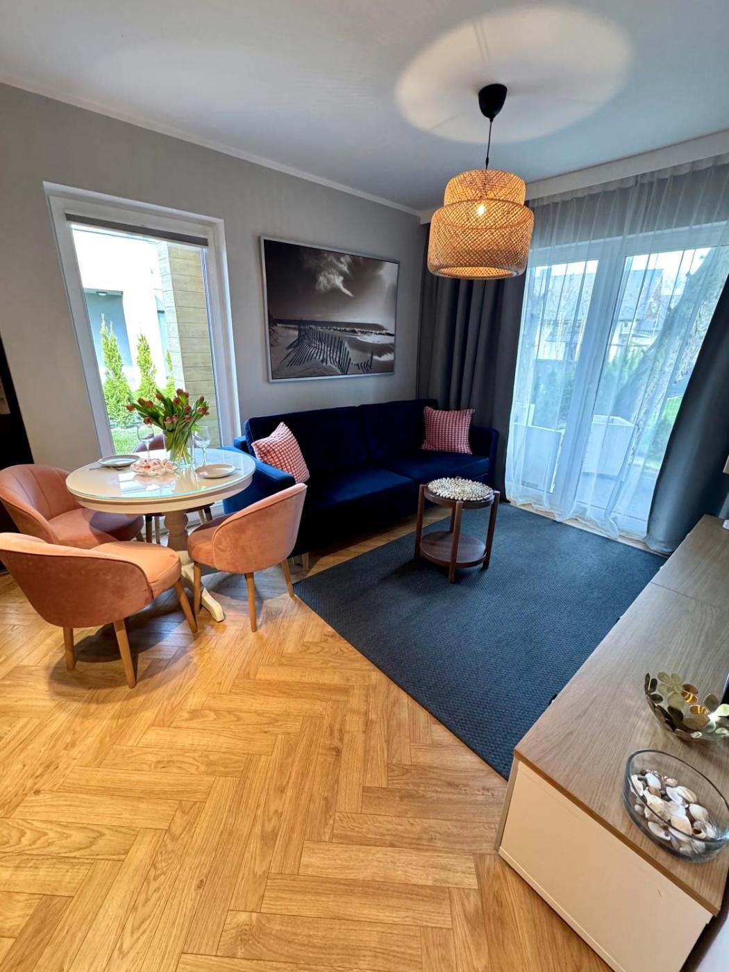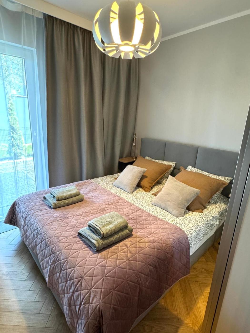Apartament z 1 sypialnią. Featuring a private entrance, this apartment is comprised of 1 living room, 1 separate bedroom and 1 bathroom with a shower and a hairdryer. The fully equipped kitchen features a stovetop, a dishwasher, kitchenware and a microwave. Boasting a terrace with garden views, this apartment also offers a washing machine and a flat-screen TV. The unit offers 2 beds. Apartament - 4 osobowy. Powierzchnia pokoju ok.: 30 mkw.
